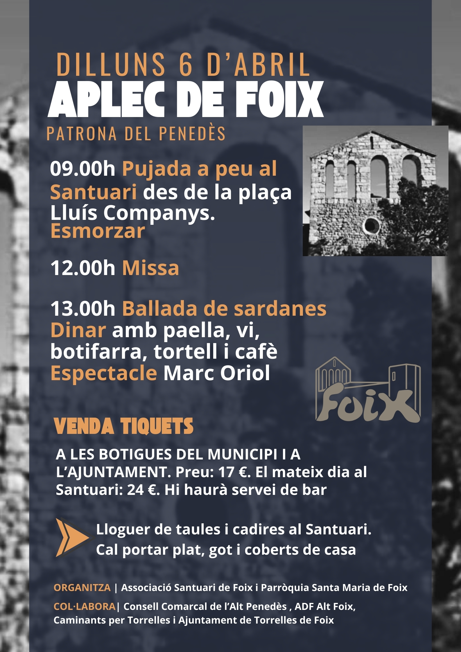 Obertura del Santuari de Sta. Maria de Foix Horari d’obertura de 10 a 13h. Organitza Associació Cívica del Santuari de Santa Maria de Foix.