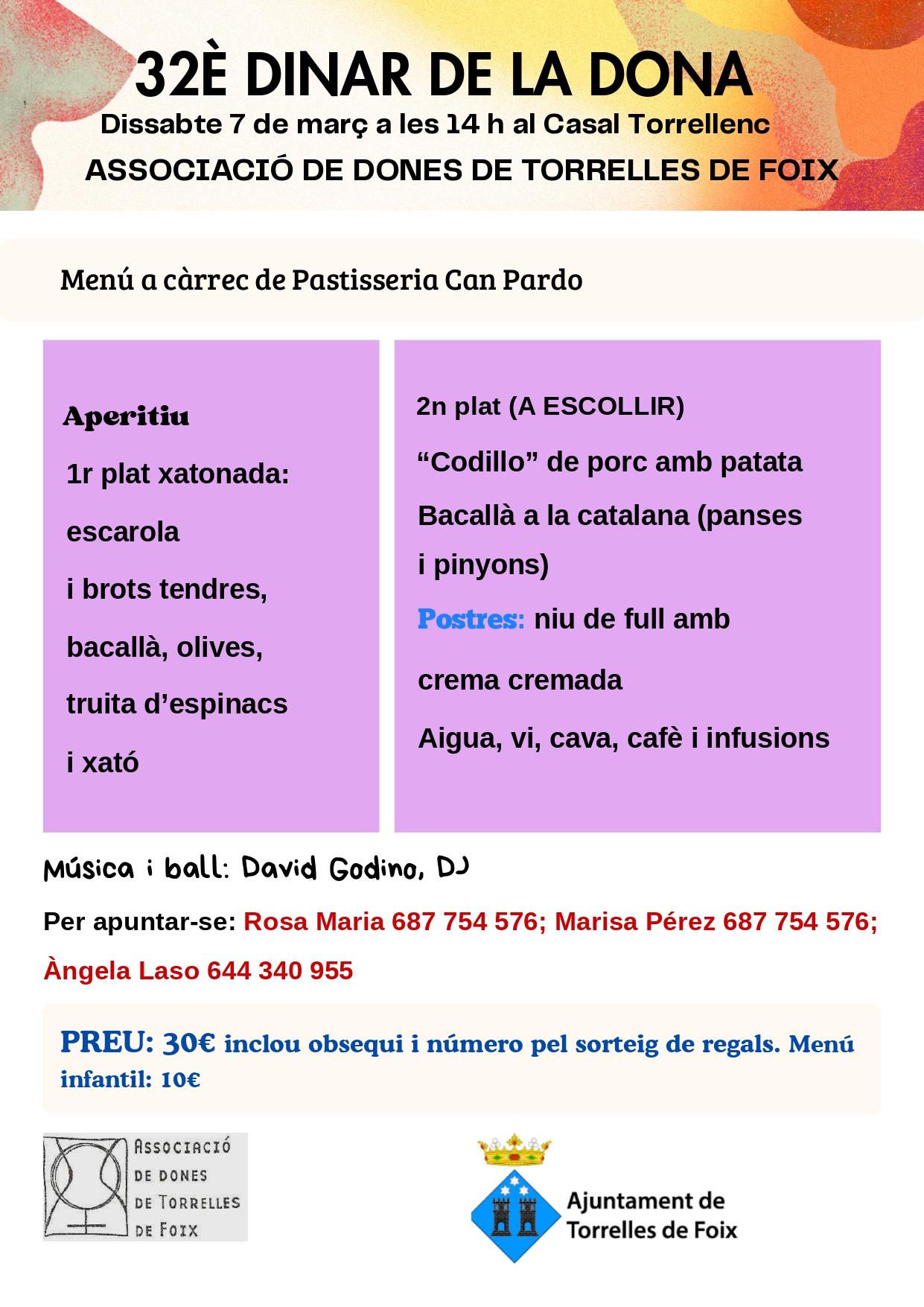 Inscripcions fins al 20 de març a l’Ajuntament. preu: 23€ adults i 15€ infants