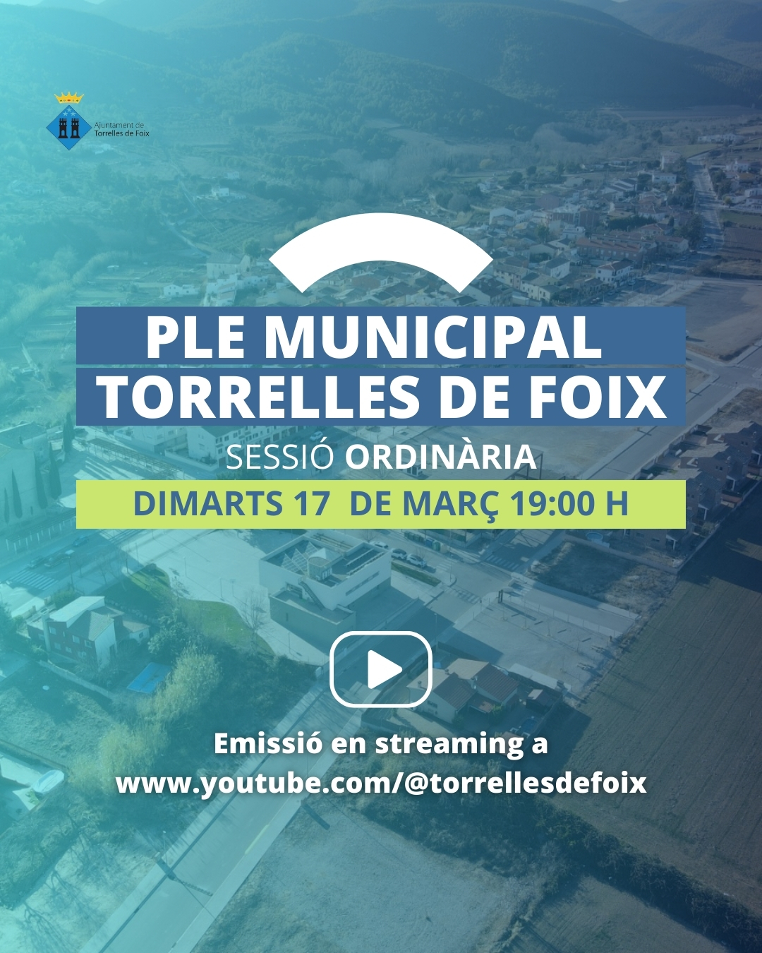 La sessió la podreu seguir en directe al canal de Youtube de l’Ajuntament www.youtube.com/@torrellesdefoix .
